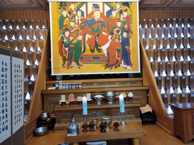 현왕전에는 영가님이 생전에 일체 업을 펼쳐 보이는 대륜성왕이 계시구요.악을 위엄으로 굴복시키고, 참