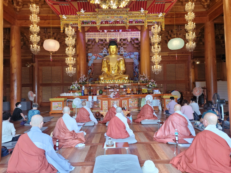 방역 수칙을 지키면서 부처님 앞에 모였다.
